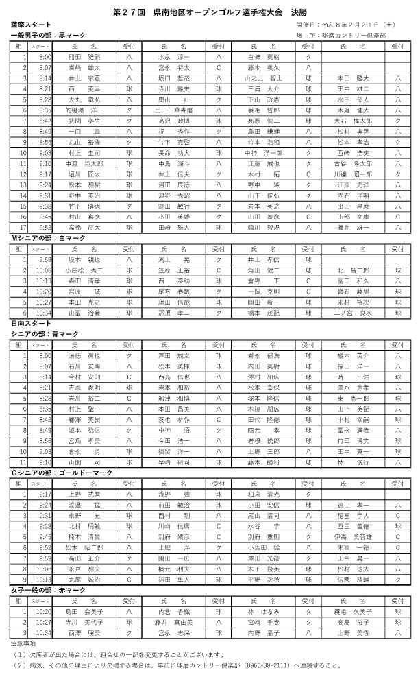 ※決勝(球磨カントリー倶楽部)での使用コースは「薩摩コース」と「日向コース」です。
