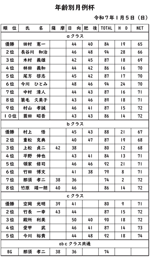 年齢別月例杯2025年1月5日