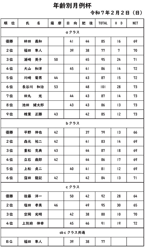 年齢別月例杯2025年2月2日
