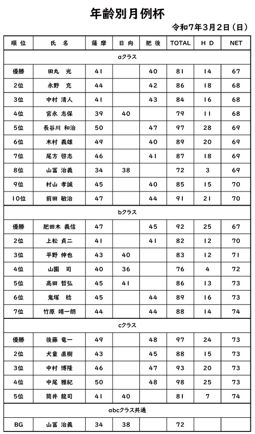 年齢別月例杯2025年3月2日