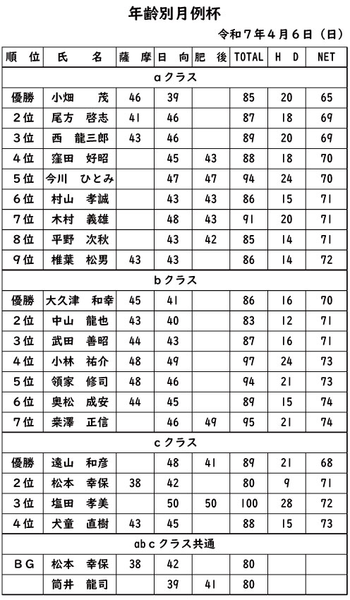 年齢別月例杯2025年4月6日