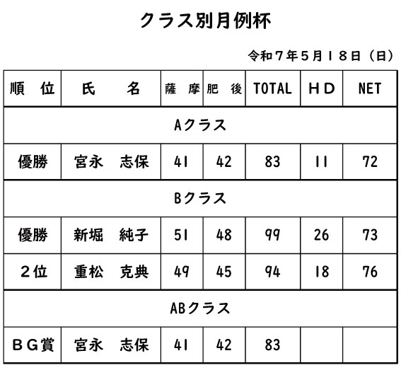 クラス別月例杯2025年5月18日
