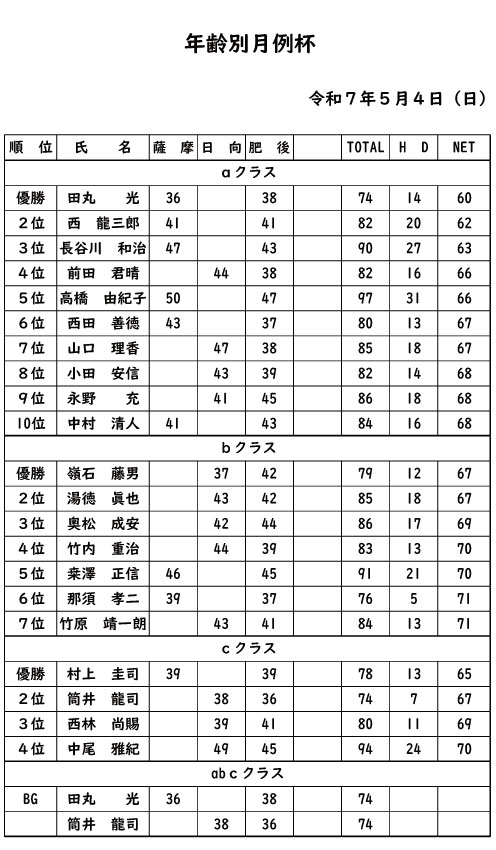 年齢別月例杯2025年5月4日