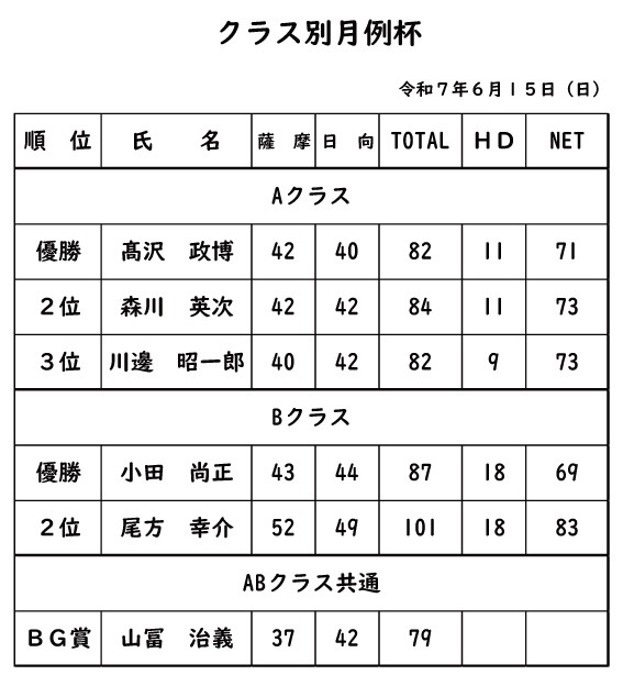 クラス別月例杯2025年6月15日