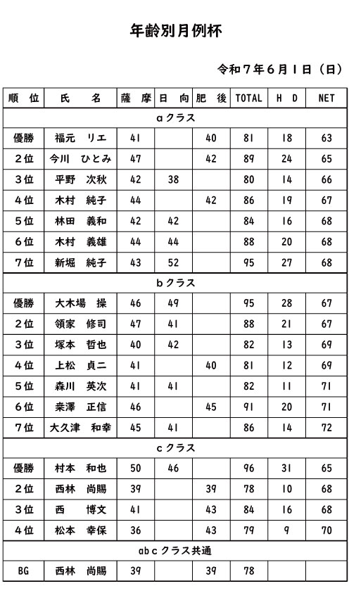 年齢別月例杯2025年6月1日