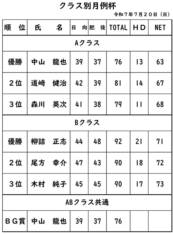 クラス別月例杯2025年7月20日