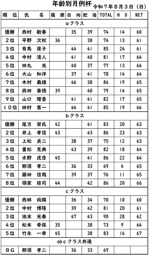 年齢別月例杯2025年8月3日
