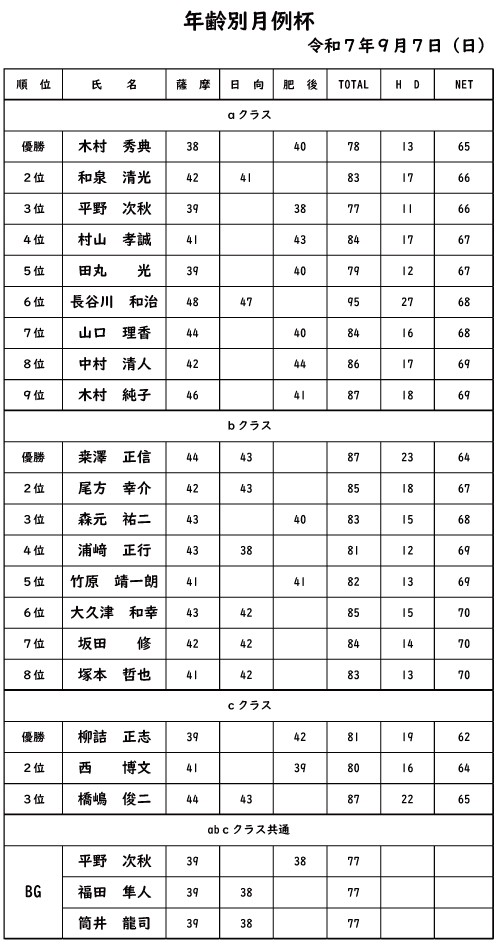 年齢別月例杯2025年9月7日